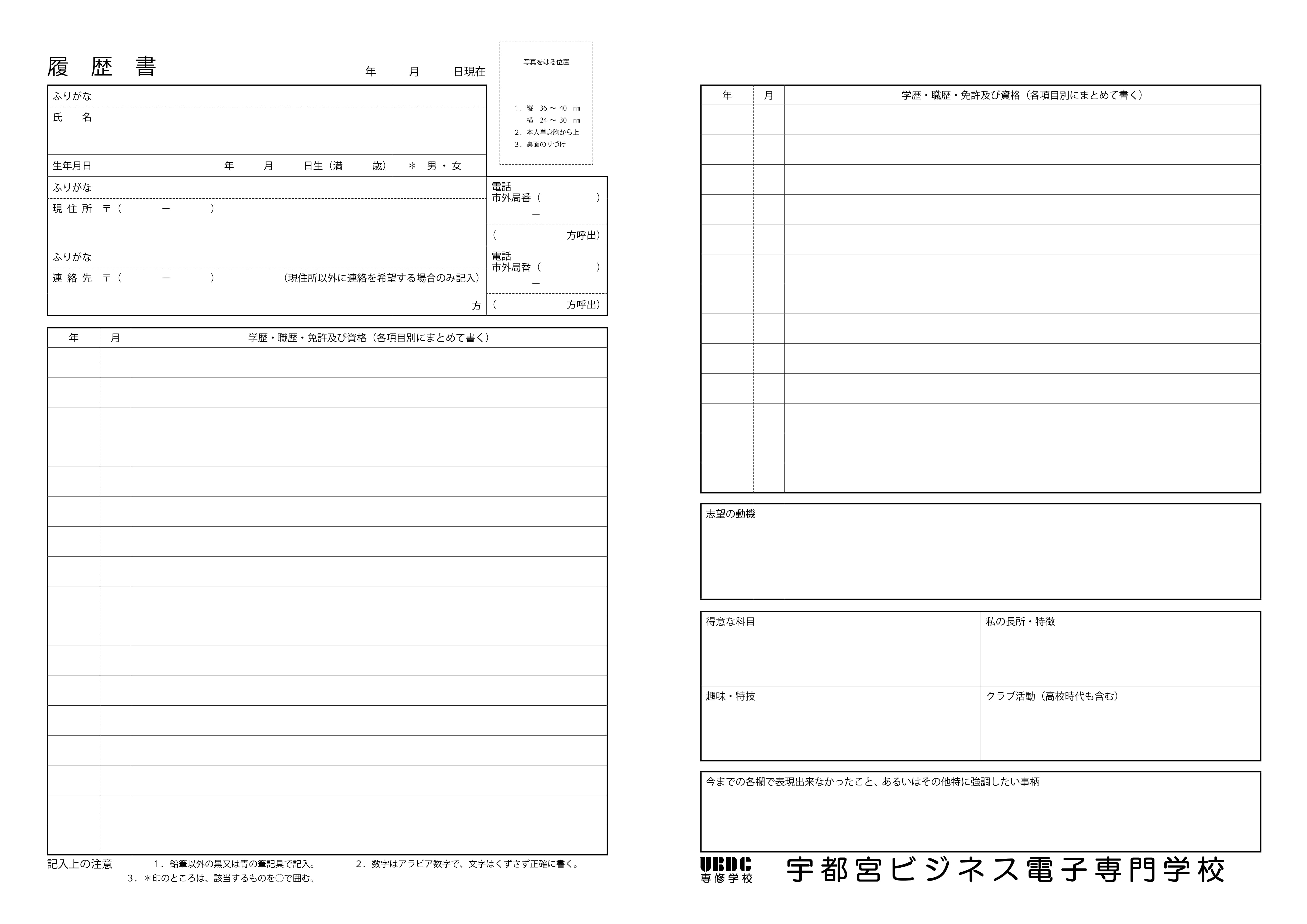 ●宇都宮ビジネス電子専門学校の履歴書です。